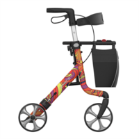 Lättviktsrollatorn Space LX är tillverkad av aluminium och väger endast 5,8 kg. Space är en rollator med komfort och stil som du kan använda utomhus och inomhus.Den är utrustad med två handbromsar ,ryggband, pakeringsbroms, trottoarpedal, avtagbar väska, sittplats, käpphållare och reflexer.